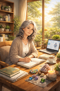 私の未来図のイラストを描いてもらいました。美人に書きすぎですが、今の髪型と似ていて、意外に想像通りです。田舎ですし、机に向かって座っているのは多分間違いないでしょう。