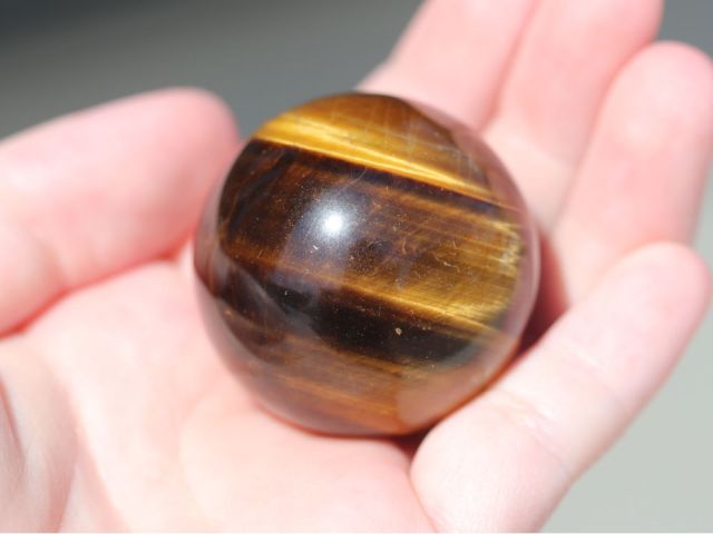 耳を傾ける姿勢 茶 タイガーアイ 丸玉 002