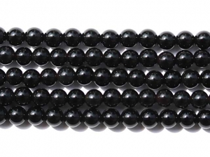 天然のものはたいへん貴重です。原石を探していますが、見つからないのが現状です。たいていは白いオニキスを加工して黒くしています。この連は本物のオニキスを使用しています。