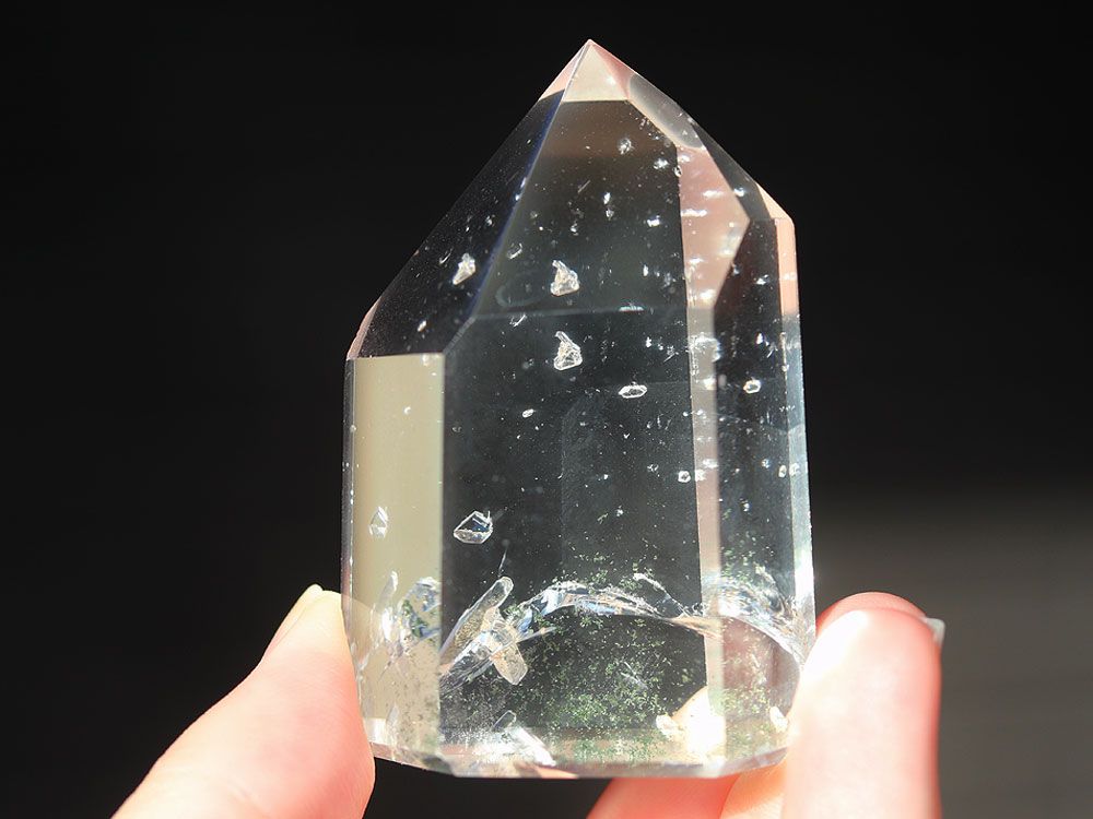 透明水晶のブラジル産ポイントクォーツです。大きな女神のイシスがあります。