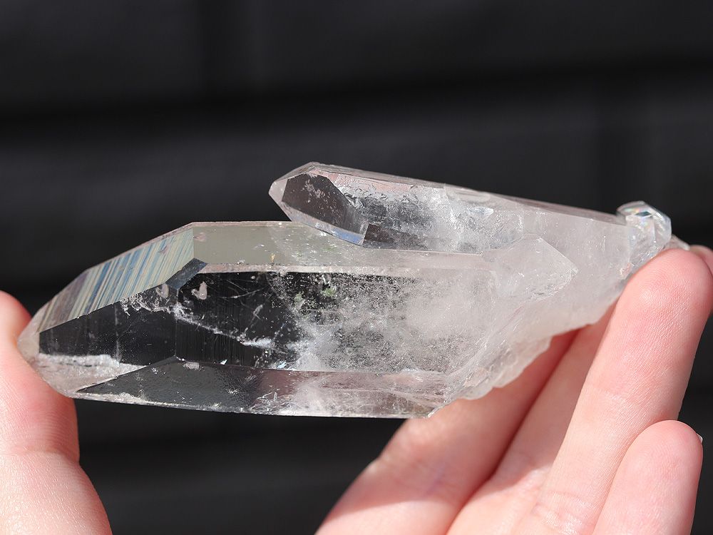 透明度は高いです。レコードキーパーがあり、小さな結晶が貫入しており、少しだけガーデンがあります。