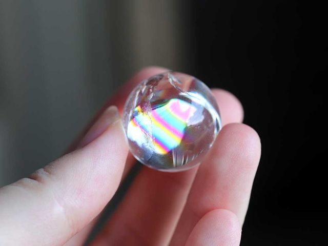 成長 透明 レインボー水晶丸玉 014