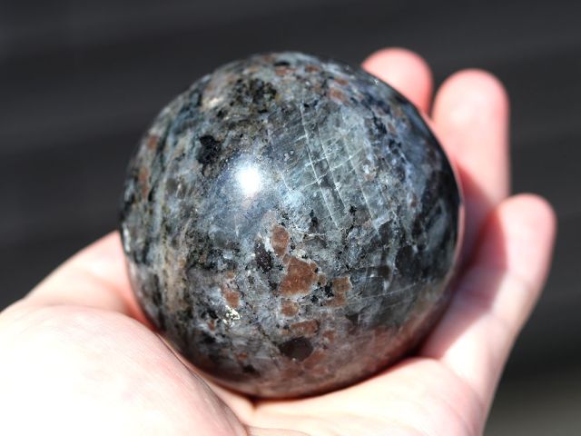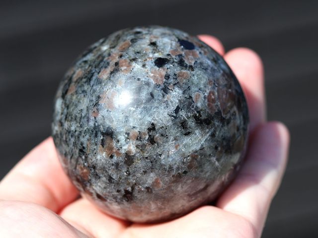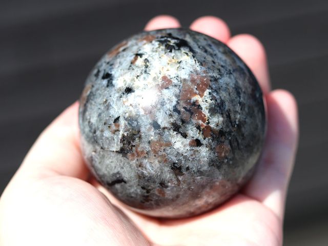ユーパーライトの丸玉です。2017年にアメリカで発見されました。ブラックライトを使用すると明るくオレンジ色に輝くきます。とても目立ちます。56.9mm 248g