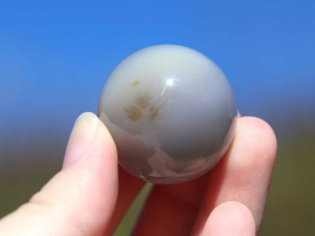 尊敬 グレー デンドリックアゲート 丸玉 094