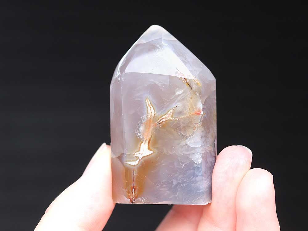 のぼり龍 乳白色 グレー アゲート ポイント ポリッシュ 101