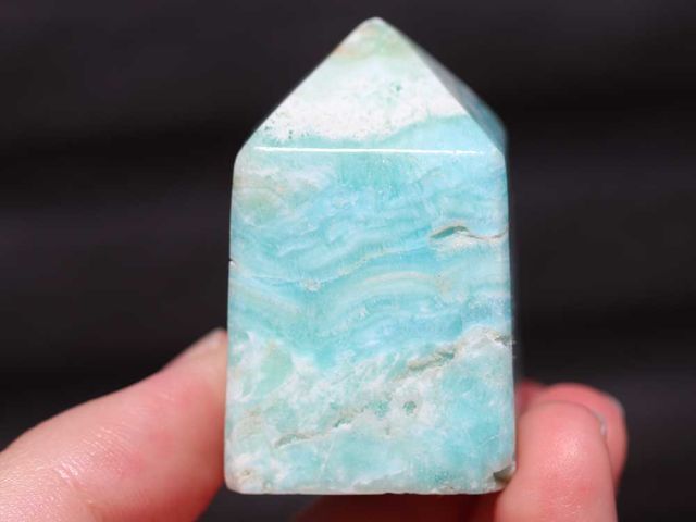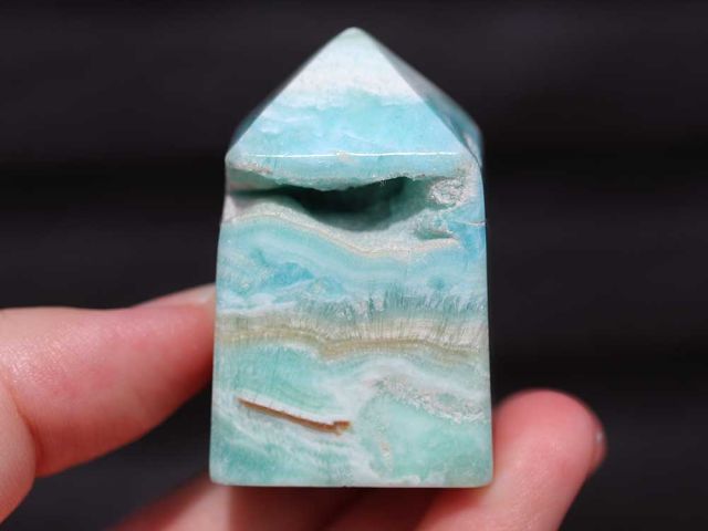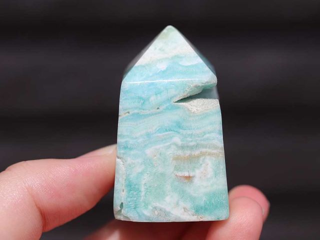 聞く耳をもつ グリーンブルー、白、茶色 バンデット・ブルーアラゴナイト オベリスク 084