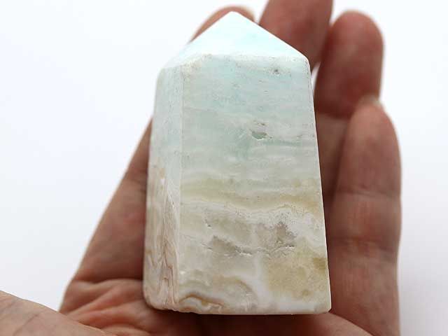 頭脳明晰 グリーンブルー、白、茶色 バンデッド・ブルーアラゴナイト オベリスク 029