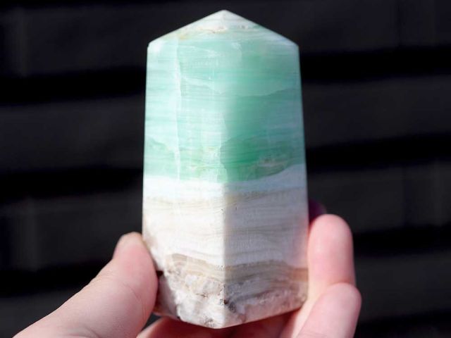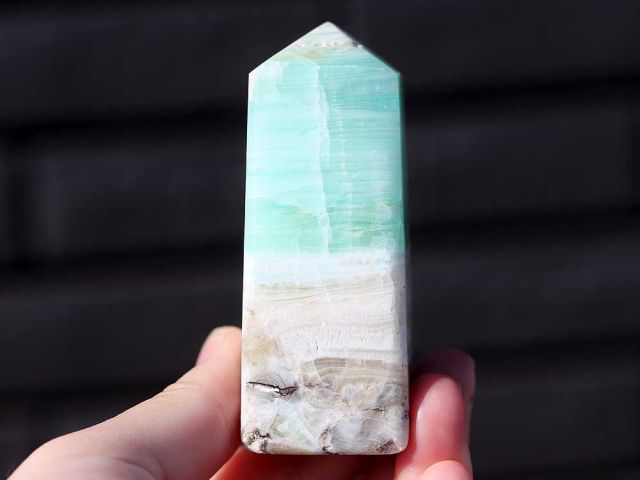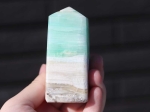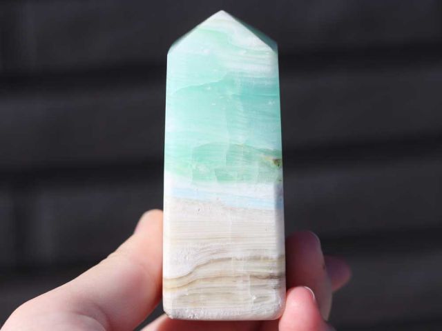 穏やかな時間 グリーンブルー、白、茶色 バンデッド・ブルーアラゴナイト オベリスク 075