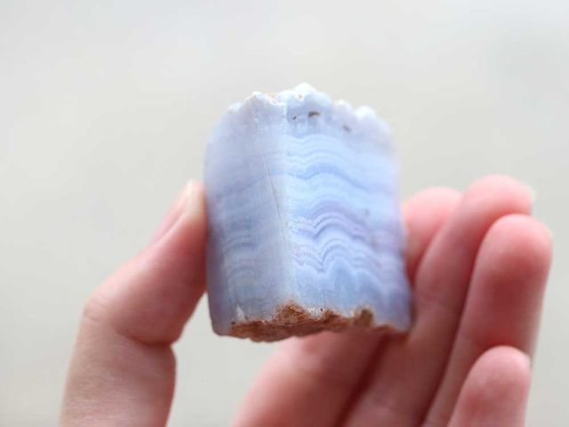 カルセドニーなのですが、水色で何層もの筋がはいっています。