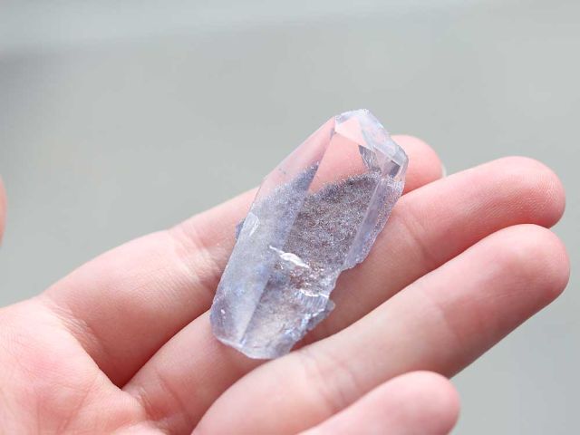 透明な水晶なので、デュモルチェライトの結晶がとてもきれいに浮き出ています。