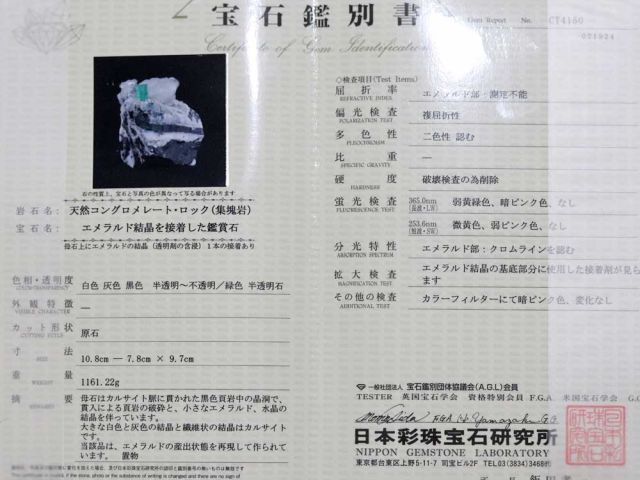 観賞用原石として非常に完成度の高い天然エメラルドを使用しています。
