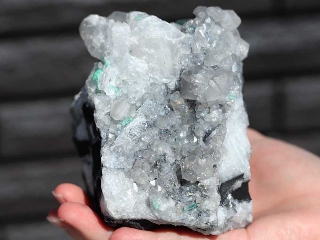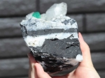 黒くうねるように入った模様の苦鉄質岩がコロンビア産の特徴になります。この母岩は水晶とのコントラストで大変美しいです。