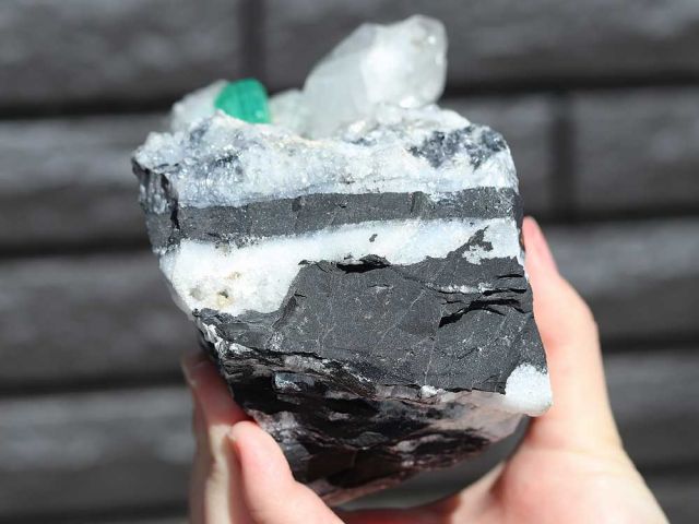 大きな結晶の裏側には細かいエメラルドがちりばめて入っていてこれも見飽きません。