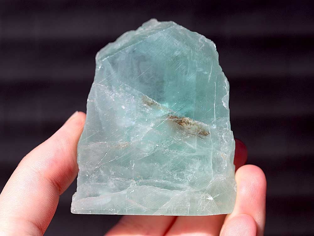 温もり 薄緑 フローライト 原石 一面磨き 060
