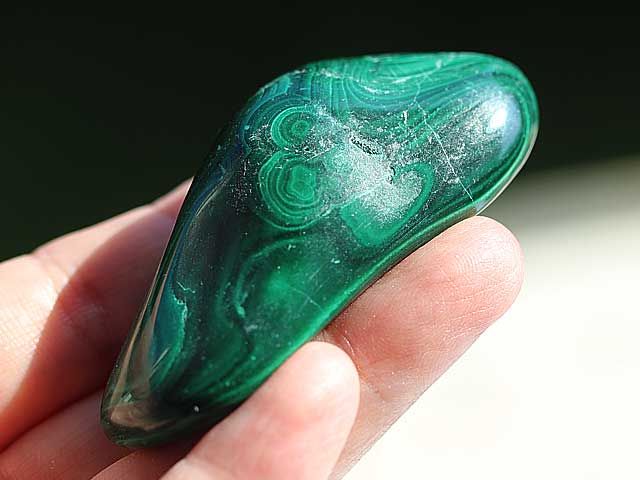 マラカイトのタンブルです。磨きが少し甘いです。24.65×66.84mm 92g