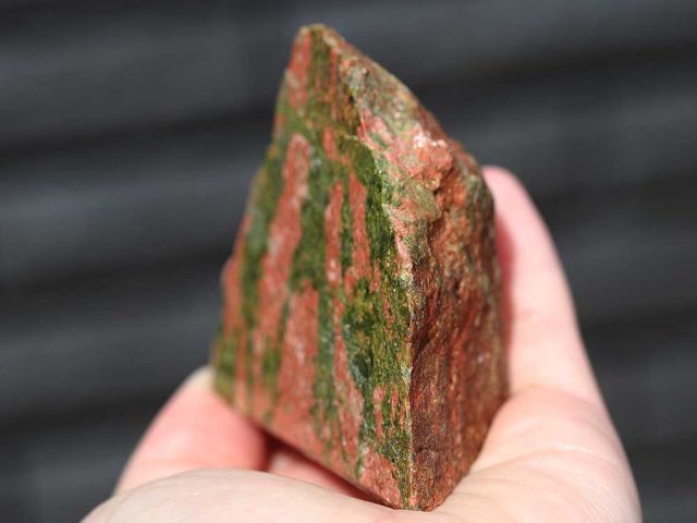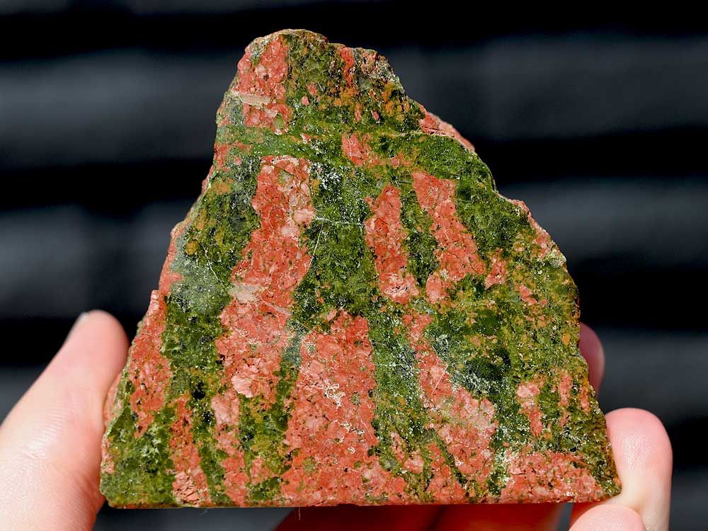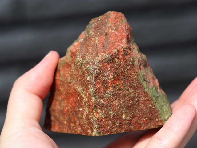 ストイック 緑と赤茶 ユナカイト 一面磨き 原石 031