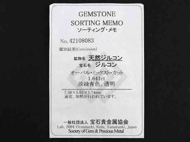 変化 水色 ブルージルコン オーバルルース 8083 鑑別メモ付