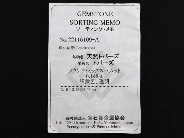 感動 ホワイトトパーズ ルース 6109 鑑別メモ付