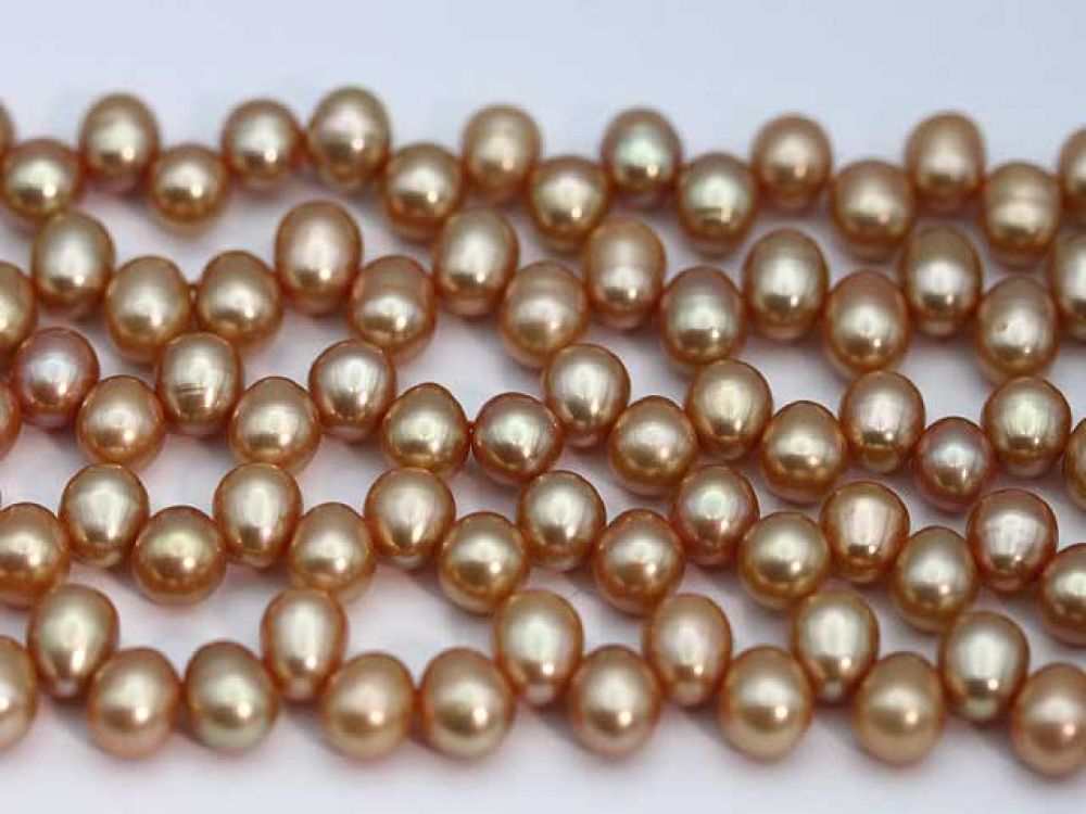 ゴールドパール 染め 7.5✕5.5mm 1連(40cm) 002